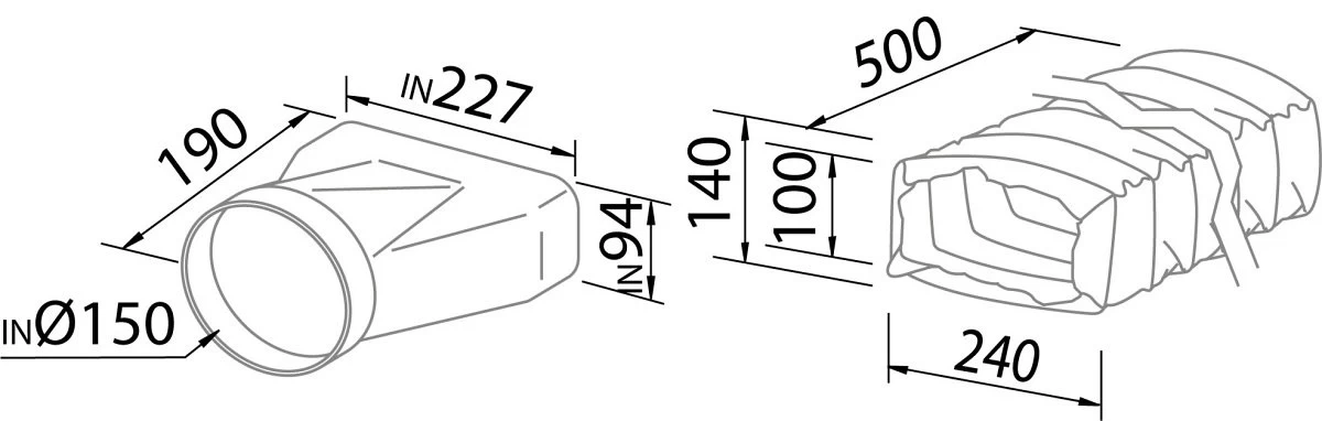 | Kanalanslutning | Rektangulär: 220 x 90mm eller Rund :150 mm |