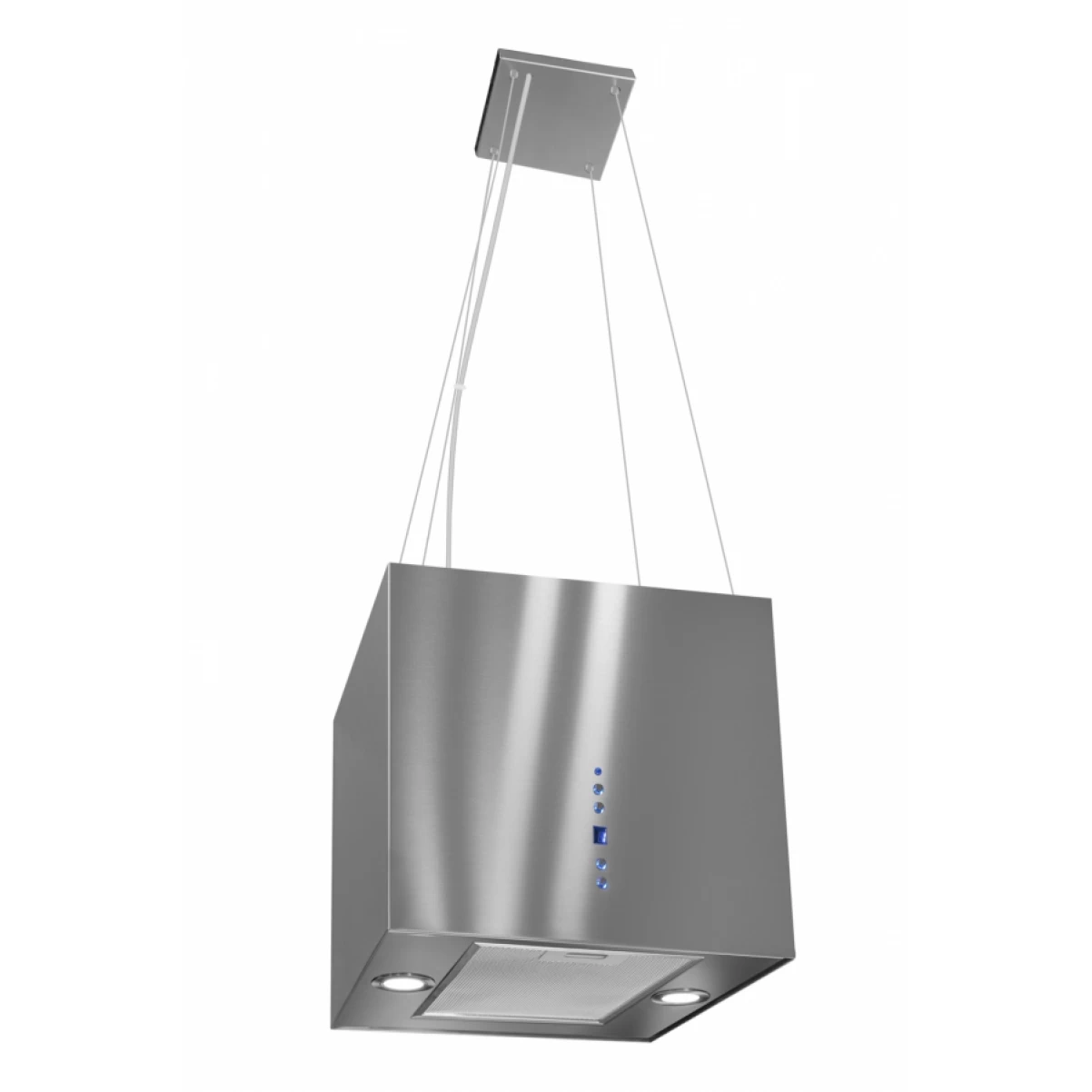 Snygg design som ser lika bra ut från alla håll. Upphängd i tre stålvajrar blir den avskalade och raka looken en iögonfallande detalj och ger känslan av rymd. Den kraftfulla motorn fångar upp all oönskad matos på ett ögonblick. Och med de 2 energisnåla LED-spots får du en perfekt belysning ovanför spishällen.