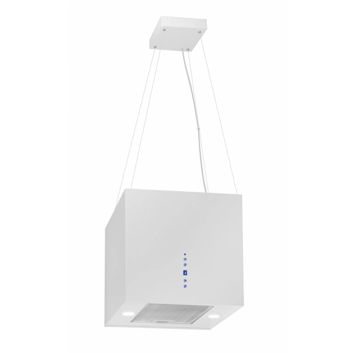 Snygg design som ser lika bra ut från alla håll. Upphängd i tre stålvajrar blir den avskalade och raka looken en iögonfallande detalj och ger känslan av rymd. Den kraftfulla motorn fångar upp all oönskad matos på ett ögonblick. Och med de 2 energisnåla LED-spots får du en perfekt belysning ovanför spishällen.